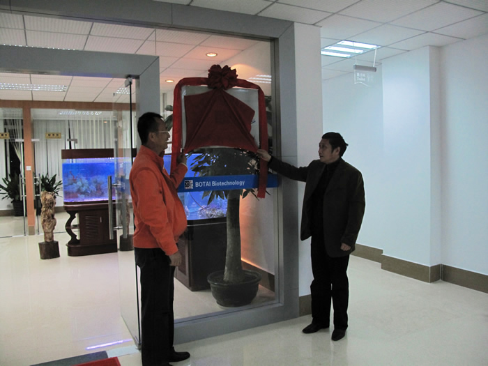 圖為 王榮輝董事長(zhǎng)與賈振宇教授一起為公司開(kāi)業(yè)揭牌