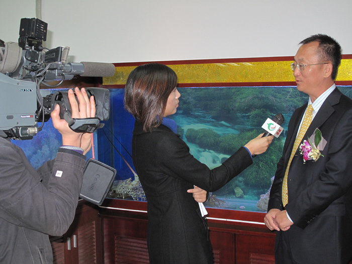 圖為 王榮輝董事長(zhǎng)正在接受電視臺(tái)的采訪
