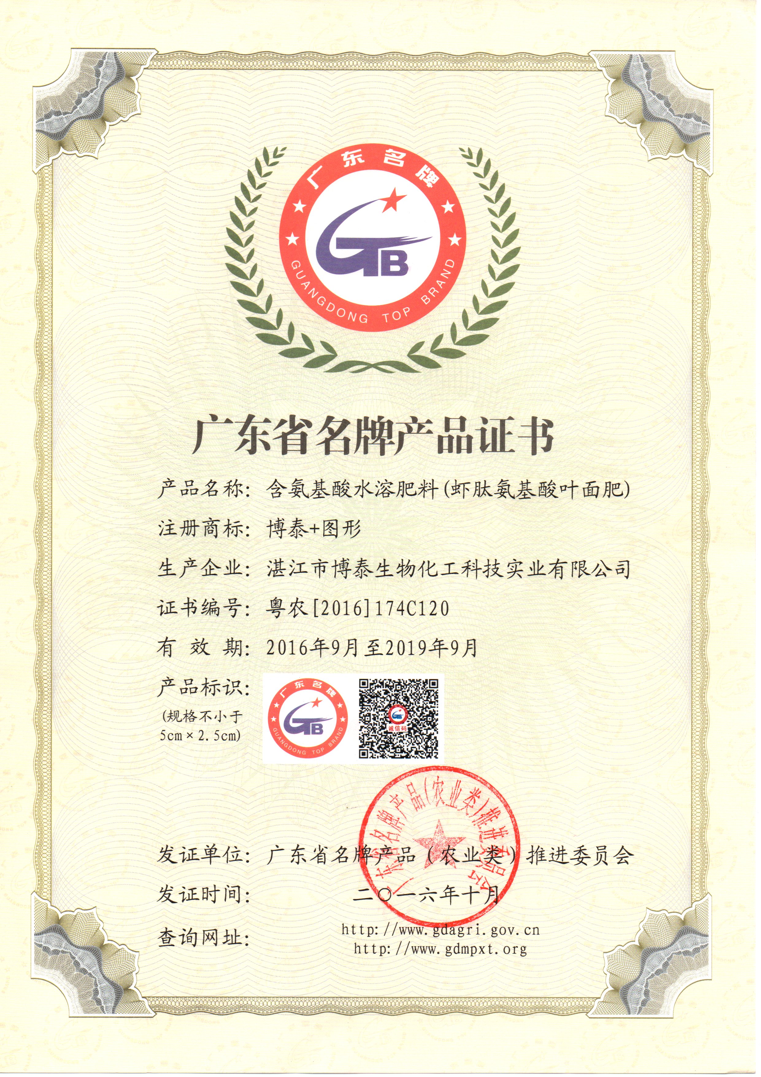 蝦肽肥料是博泰公司以蝦頭蝦殼為核心原料首創(chuàng)研制的新型海洋復(fù)合生物刺激素功能肥料,榮獲了2018年度中國(guó)農(nóng)化風(fēng)云榜明星肥料產(chǎn)品;博泰公司也登上了2018年度中國(guó)新銳農(nóng)化企業(yè)榜。