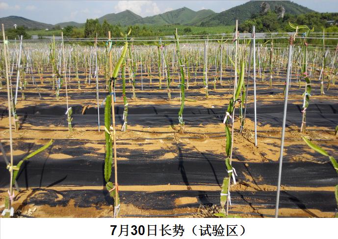 2015年7月4日至30日,我司技術人員在金穗公司火龍果基地對產(chǎn)品蝦肽根苗壯、蝦肽土也樂進行試驗,試驗結果盡如人意 ,又一次證明了蝦肽肥料對于土壤、作物來說,是強有力的助手?。?!