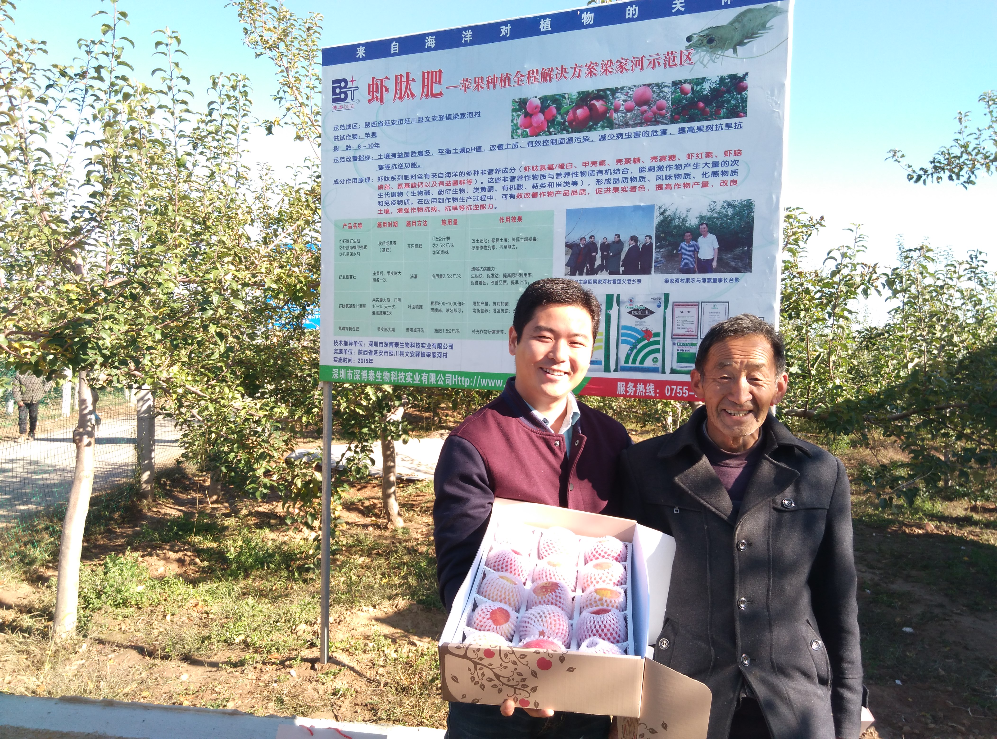 蝦肽系列肥料在延安梁家河蘋果示范基地進行試用,取得了顯著的效果,蘋果樹的樹勢增強了,葉子也濃綠了,與沒用的蘋果樹一比,明顯是不一樣了!