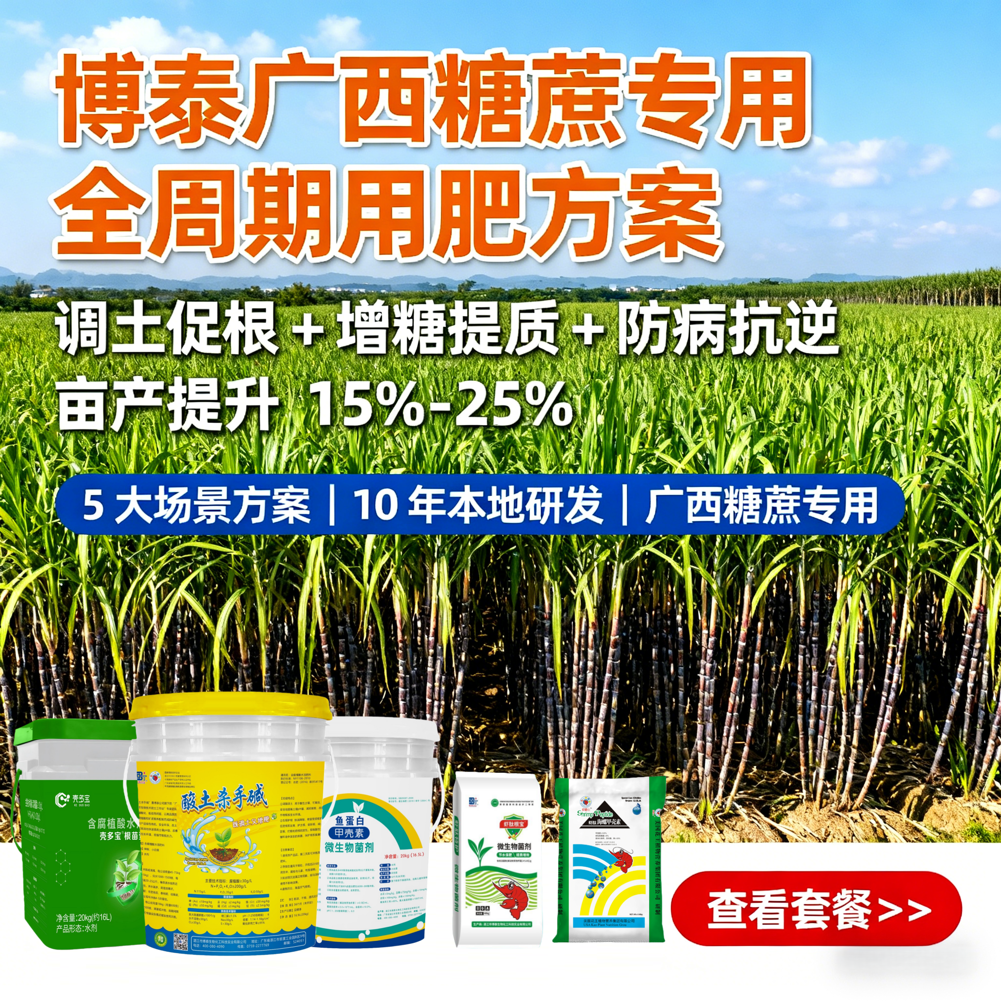 廣西糖蔗種植常見難題,一套方案全解決: 酸性紅壤板結(jié):土壤 pH 值偏低,根系難下扎,吸肥效率差 重茬障礙:連作地塊病害多,出苗率低,長勢參差不齊 水肥流失快:雨季養(yǎng)分淋溶,干旱時缺水缺肥,作物易早衰 分蘗少莖稈弱:后期易倒伏,有效莖數(shù)不足影響產(chǎn)量 糖分積累不足:成熟度不夠,收購價低,收益縮水 博泰生物深耕廣西糖蔗種植需求,針對酸性土壤、氣候特點(diǎn)及糖蔗生...