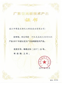 生物有機肥--廣東省名牌產(chǎn)品證書